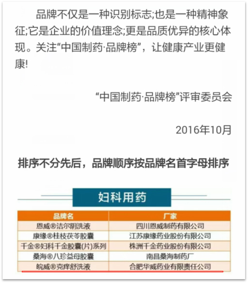 此次入選“中國制藥·品牌榜”產(chǎn)品——皖威R克癢舒洗液是華威人多年來自主研發(fā)的主打品牌之一。該藥采用中西藥結(jié)合,配方科學(xué)、新穎,上市以來,因其臨床使用安全可靠,療效確切,受到醫(yī)務(wù)工作者及患者的一致認(rèn)可,在全國婦科產(chǎn)品中占有重要地位,銷售網(wǎng)絡(luò)遍及全國各省份,目前該產(chǎn)品進(jìn)入了廣東、浙江、江蘇、山東、安徽、北京、陜西、甘肅等21個(gè)省的醫(yī)保品種目錄,市場(chǎng)供不應(yīng)求。