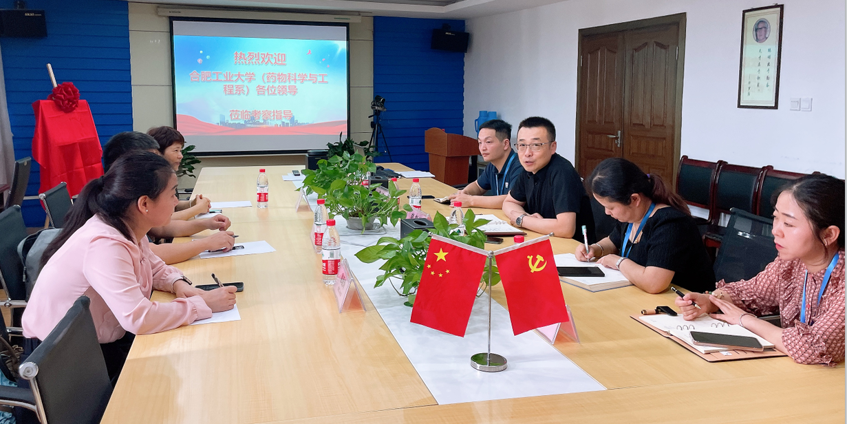 2023年05月31日上午,合肥工業(yè)大學食品與生物工程學院藥物科學與工程系主任陳元利、教授徐紅梅、惠愛玲一行蒞臨華威藥業(yè),就校企合作及在華威藥業(yè)建立“大學生就業(yè)實習基地”相關事宜進行溝通和對接,華威藥業(yè)總經(jīng)理胡劍波攜公司研發(fā)、生產(chǎn)、質量部門負責人熱情接待了陳主任一行。