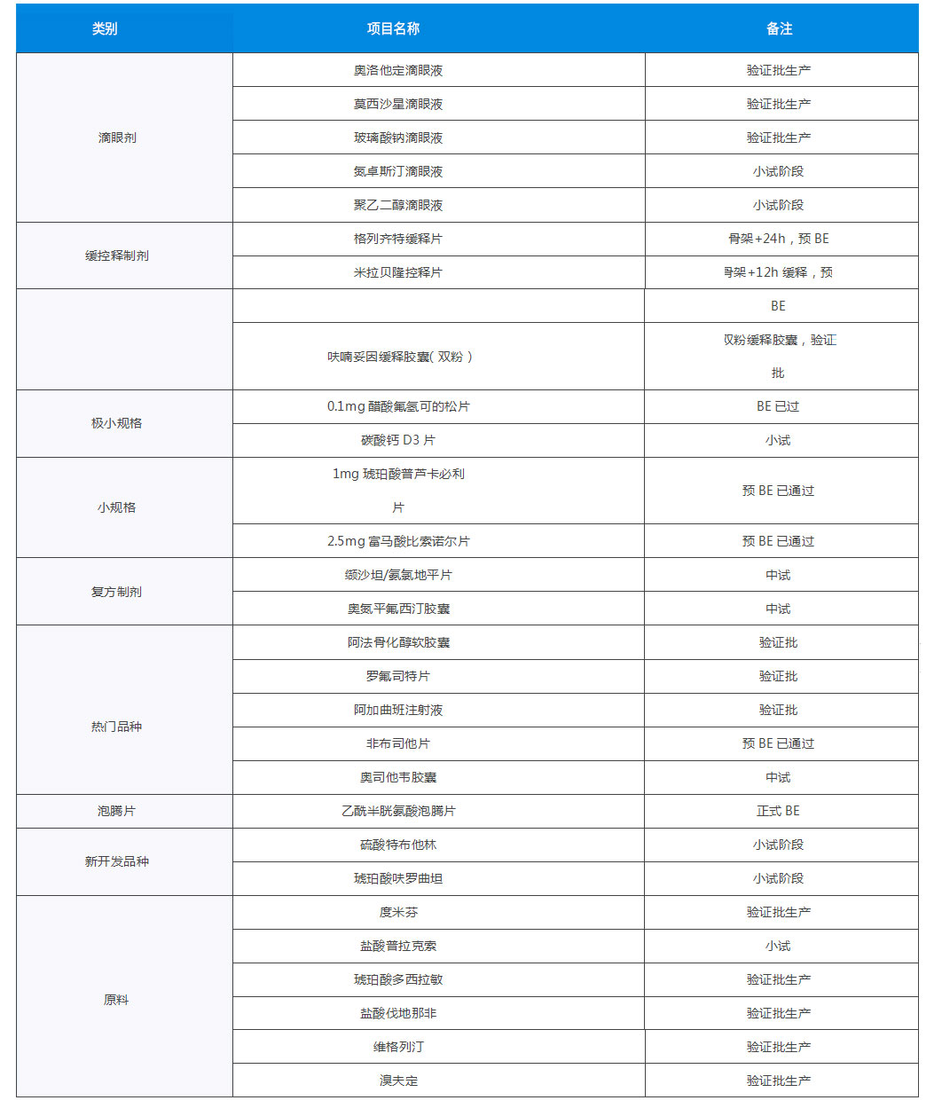 研發(fā)團(tuán)隊(duì)成員擁有數(shù)十個(gè)各類(lèi)劑型研發(fā)經(jīng)驗(yàn),其中負(fù)責(zé)的部分項(xiàng)目已經(jīng)通過(guò)了預(yù)BE和BE試驗(yàn)。目前研發(fā)中心已有多個(gè)自主在研項(xiàng)目進(jìn)入驗(yàn)證階段。具體項(xiàng)目經(jīng)驗(yàn)見(jiàn)下表。